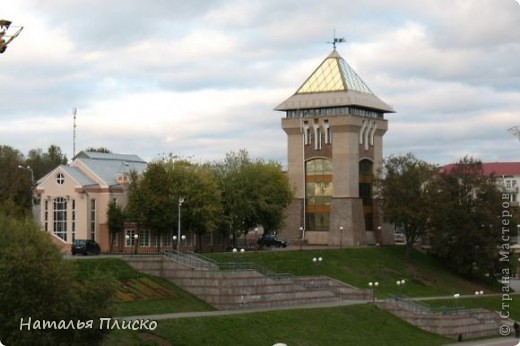Дорогие друзья, в прошлый раз я вела свой репортаж с территории одного маленького сказочного дворика в белорусском местечке г.Поставы ( ), а сегодня мы с Вами погуляем по территории одной из витебских гимназий, где на маленьком пятачке собраны почти все достопримечательности города. Как такое может быть? Очень просто - эта гимназия с художественной направленностью, в ней учатся простые, но талантливые дети, которые вместе с родителями и учителями построили у себя в школе этот маленький городок. По ходу экскурсии сначала я буду Вам показывать макет здания, а потом оригинал, а попутно немного расскажу об этих достопримечательностях. Итак, начнём...
